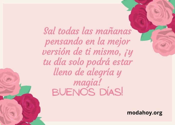 ✔️ Sal todas las mañanas pensando en la mejor versión de ti mismo, ¡y tu día solo podrá estar lleno de alegría y magia!Buenos días!